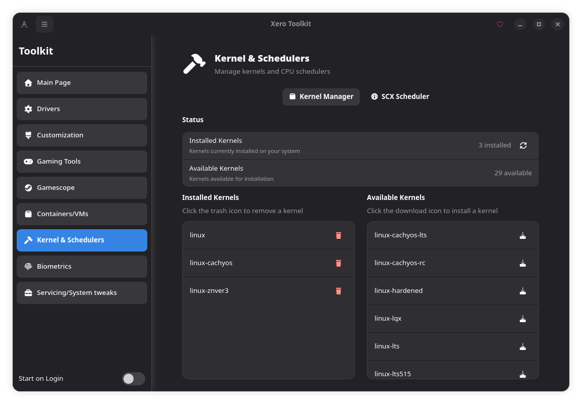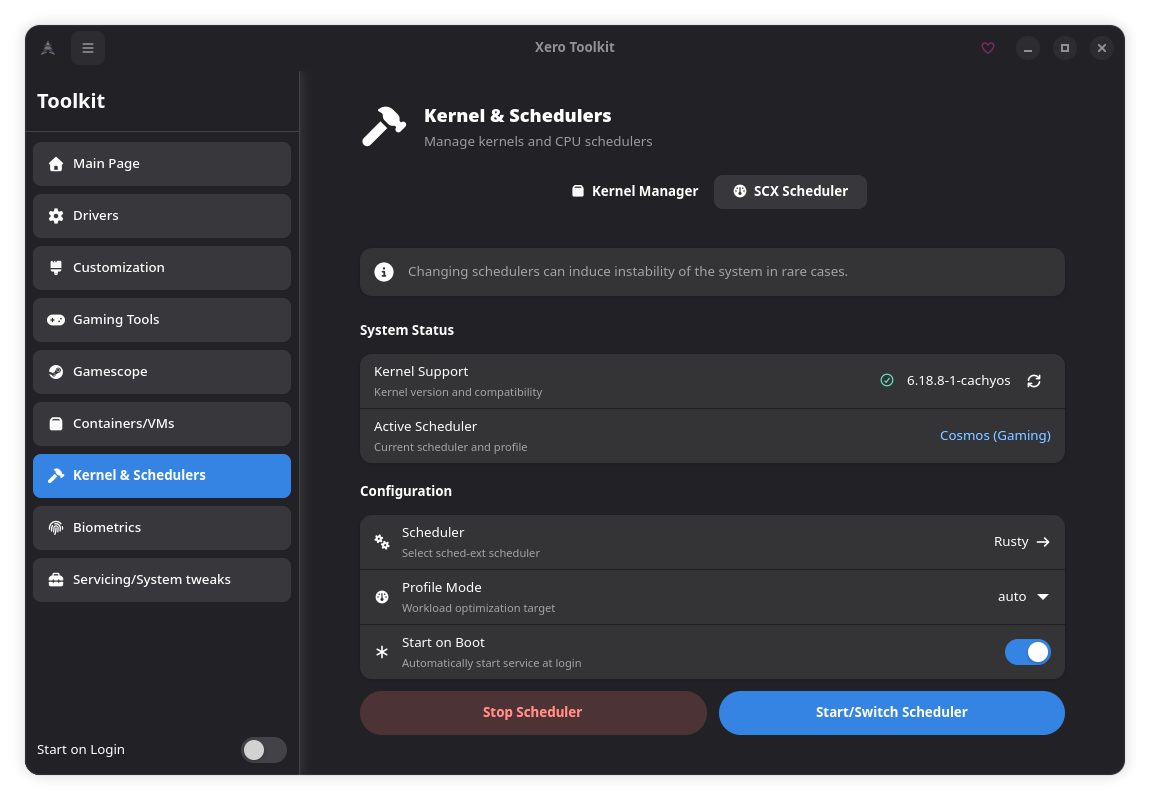 We now include a KernelManager and Scheds-ext tool in the toolkit for you to tweak running Kernel to work for every need !